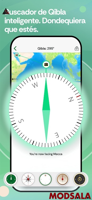 Cuando se viaja o se está en un lugar desconocido, puede surgir la duda sobre hacia qué dirección rezar. La función de brújula integrada permite encontrar rápidamente la dirección correcta hacia La Meca desde cualquier parte del mundo. Solo hay que abrir la herramienta y seguir la indicación visual para alinearse correctamente.